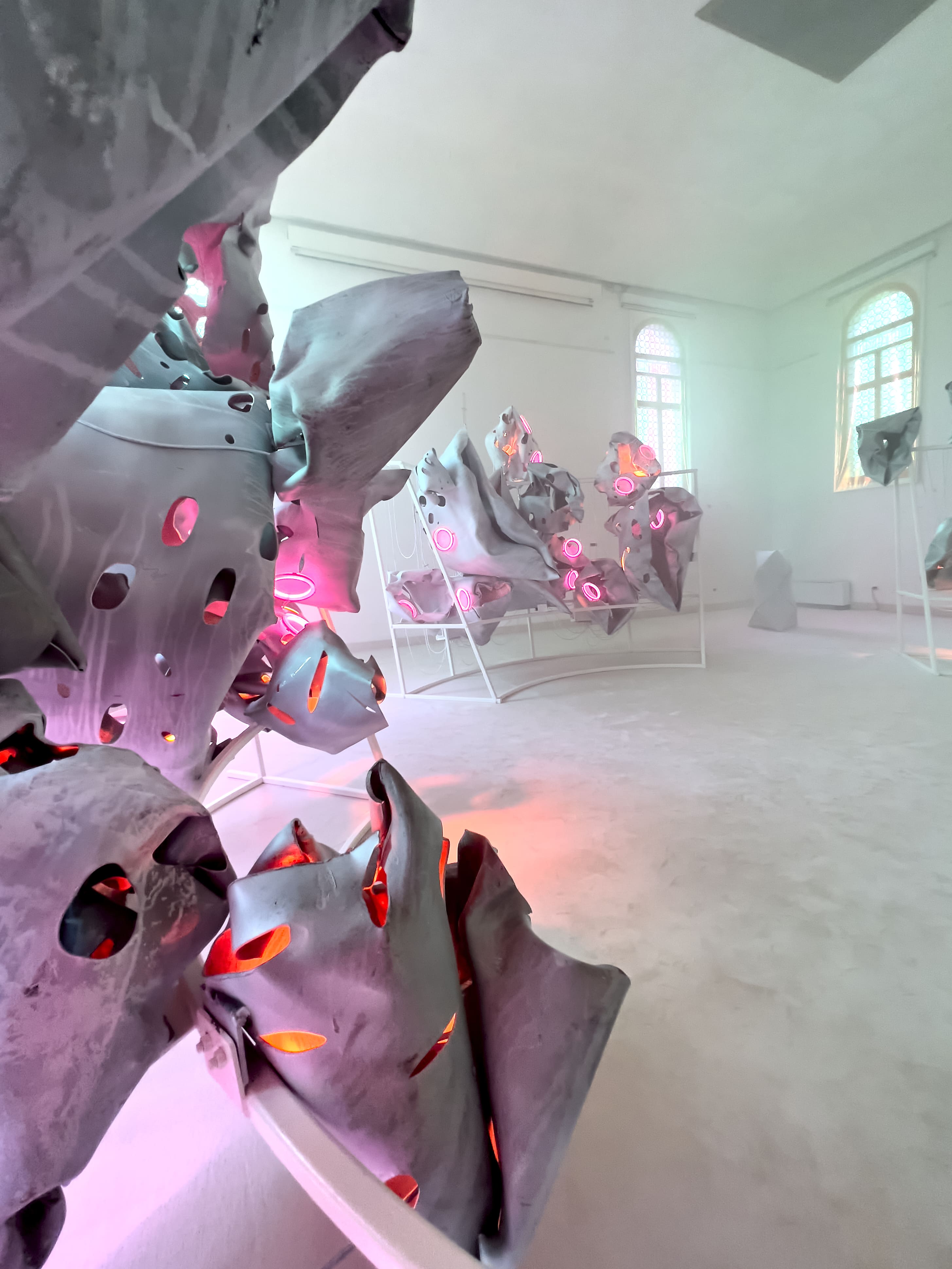 Il chiostro della chiesa con colonne decorate con volute, ospita una grande scultura in ceramica site-specific, intitolata 'Ceramorphia_', che evoca i modelli intricati della natura simili a funghi dalle texture ruvide, è ispirata dallo studio decennale di Quinze sul suo giardino di fiori selvatici. Il gruppo di cinque opere, di dimensioni comprese tra 1,20 e 4 metri, è stato realizzato in collaborazione con lo studio belga Atelier Vierkant, e narra la straordinaria varietà estetica della natura che riconquista il suo spazio nei paesaggi urbani.