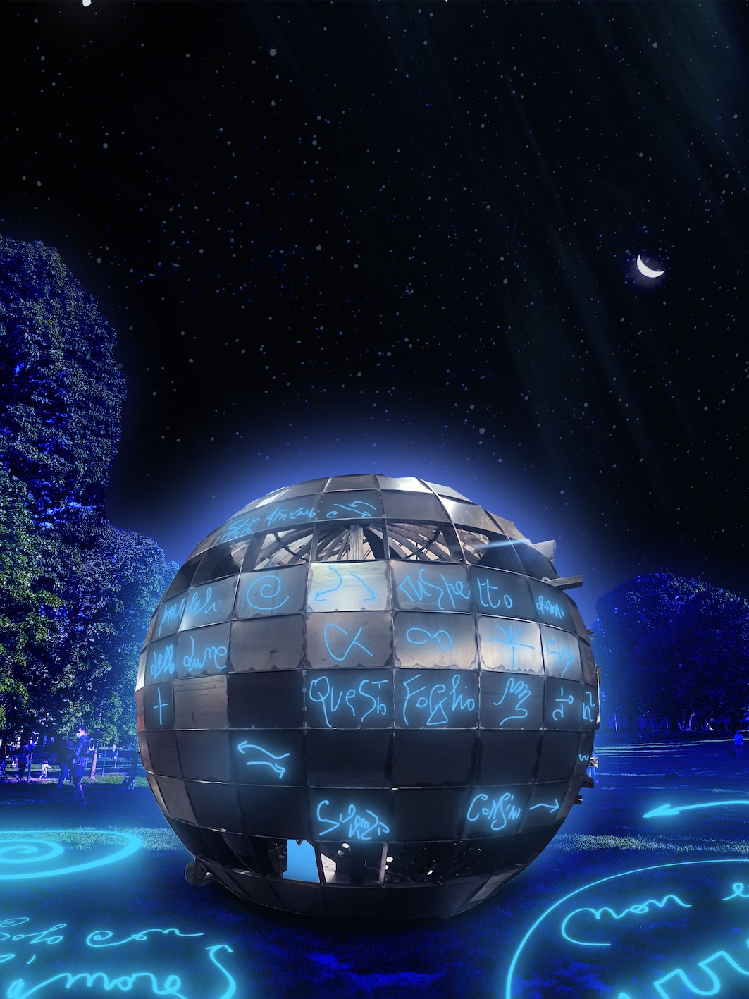 Con le installazioni luminose di Marco Nereo Rotelli e le due sfere giganti multisensoriali stanziali dal titolo « So(g)no»