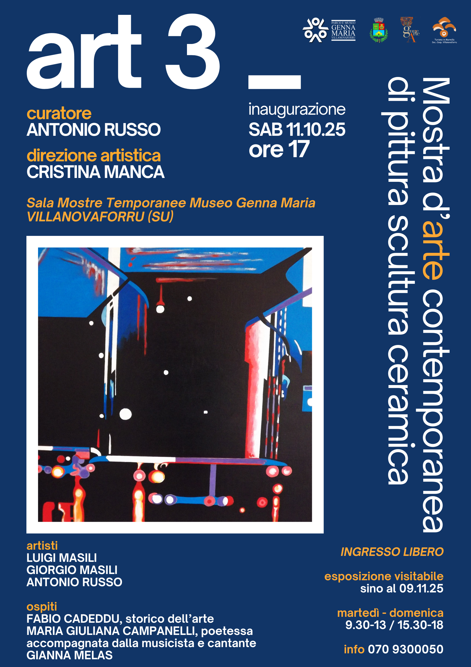 “๐—ฎ๐—ฟ๐˜ ๐Ÿฏ” รจ un incontro di tre amici-artisti che mettono in mostra le proprie creazioni: ๐—Ÿ๐˜‚๐—ถ๐—ด๐—ถ ๐— ๐—ฎ๐˜€๐—ถ๐—น๐—ถ, ๐—š๐—ถ๐—ผ๐—ฟ๐—ด๐—ถ๐—ผ ๐— ๐—ฎ๐˜€๐—ถ๐—น๐—ถ e ๐—”๐—ป๐˜๐—ผ๐—ป๐—ถ๐—ผ ๐—ฅ๐˜‚๐˜€๐˜€๐—ผ.