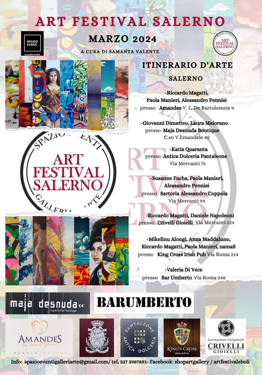 L' Art Festival Salerno prende forma dando vita a vere e proprie gallerie d'arte urbana mediante l'esposizione di opere d'arte contemporanea realizzate da artisti provenienti da tutta Italia ed esposte in diverse strutture commerciali e turistiche della città quali caffè, ristoranti, boutique d'alta moda, gioiellerie, hotel, ripensando i luoghi comuni dell'arte, abbandonando l'idea di gallerie e musei canonici, mettendo l'arte a disposizione di tutti e offrendo la possibilità di acquistare le opere direttamente dagli artisti.