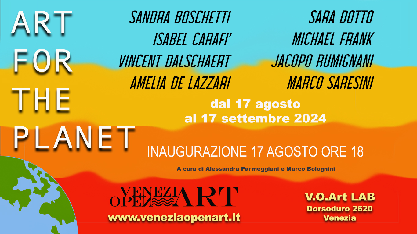 L'Associazione Venezia Open Art è lieta di annunciare l'inaugurazione della mostra di pittura e fotografia, “Art for the Planet”, che si terrà dal 17 agosto al 17 settembre 2024 presso V.O.Art LAB, a Venezia.