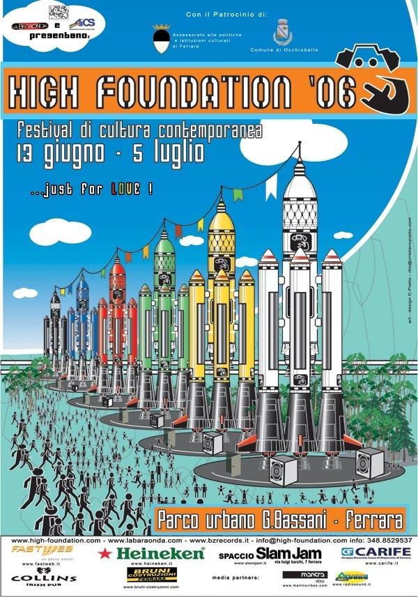 High foundation, festival di cultura alternativa, ormai giunto alla quinta edizione, ha come intento la promozione culturale contemporanea non solo in ambito nazionale ma europeo, attraverso l’allestimento di uno spazio polivalente multimediale in cui possano convergere le varie forme di espressione artistica quali musica, arte figurativa e performativa