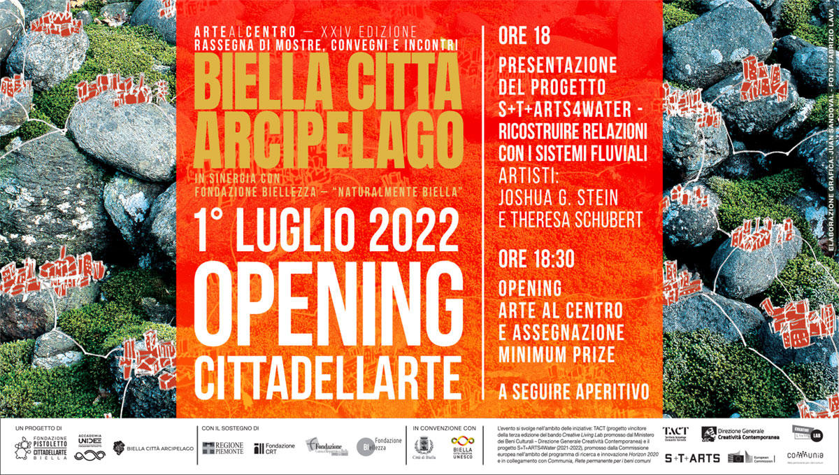 S+T+ARTS4Water. Ricostruire le relazioni con i sistemi fluviali presenta i progetti finali degli artisti Theresa Schubert e Joshua G. Stein, frutto della loro residenza all’interno del progetto S+T+ARTS4Water (2021-2022), parte di S+T+ARTS (Science, Technology & the Arts), un'iniziativa della Commissione Europea promossa nell'ambito del programma di ricerca e innovazione Horizon 2020 per sostenere le collaborazioni tra artisti, scienziati, ingegneri e ricercatori.