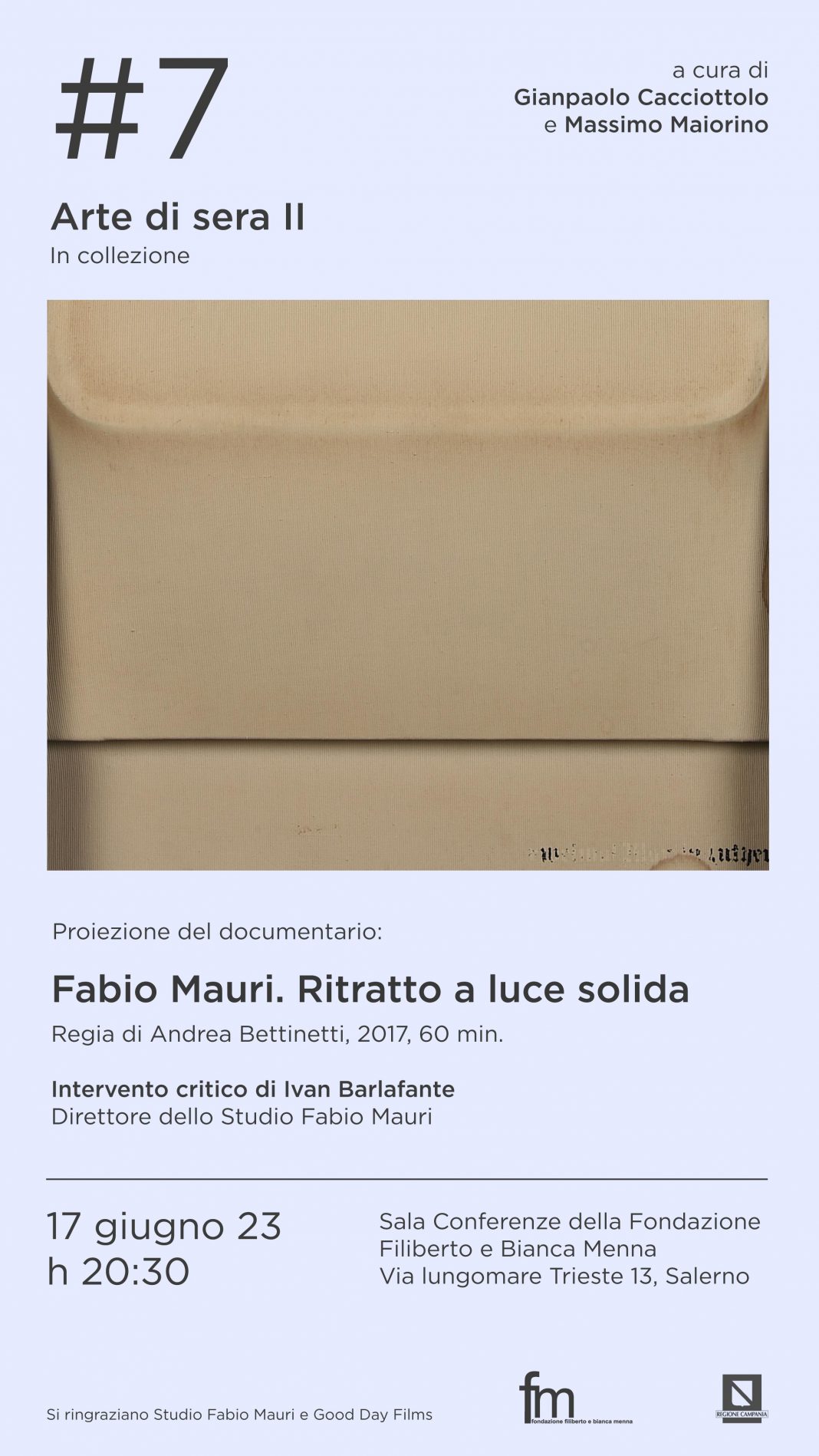 La Fondazione Filiberto e Bianca Menna – Centro Studi d’Arte Contemporanea è lieta di presentare Arte di sera II – In collezione, ciclo di proiezioni a cura di Gianpaolo Cacciottolo e Massimo Maiorino.