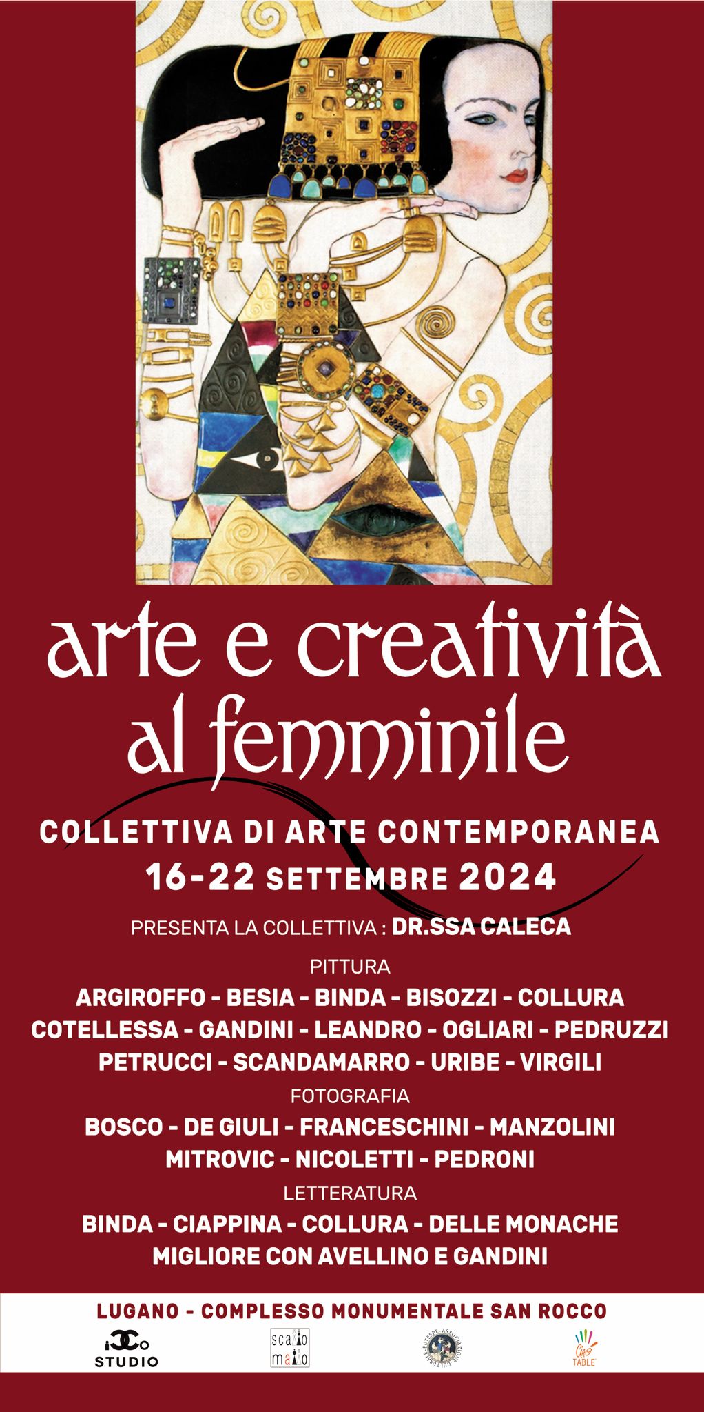 Dal 16 al 22 settembre 2024 si terrà a Lugano, la mostra collettiva "Arte e Creatività al Femminile", presso lo storico Complesso Monumentale di San Rocco, in piazza San Rocco.