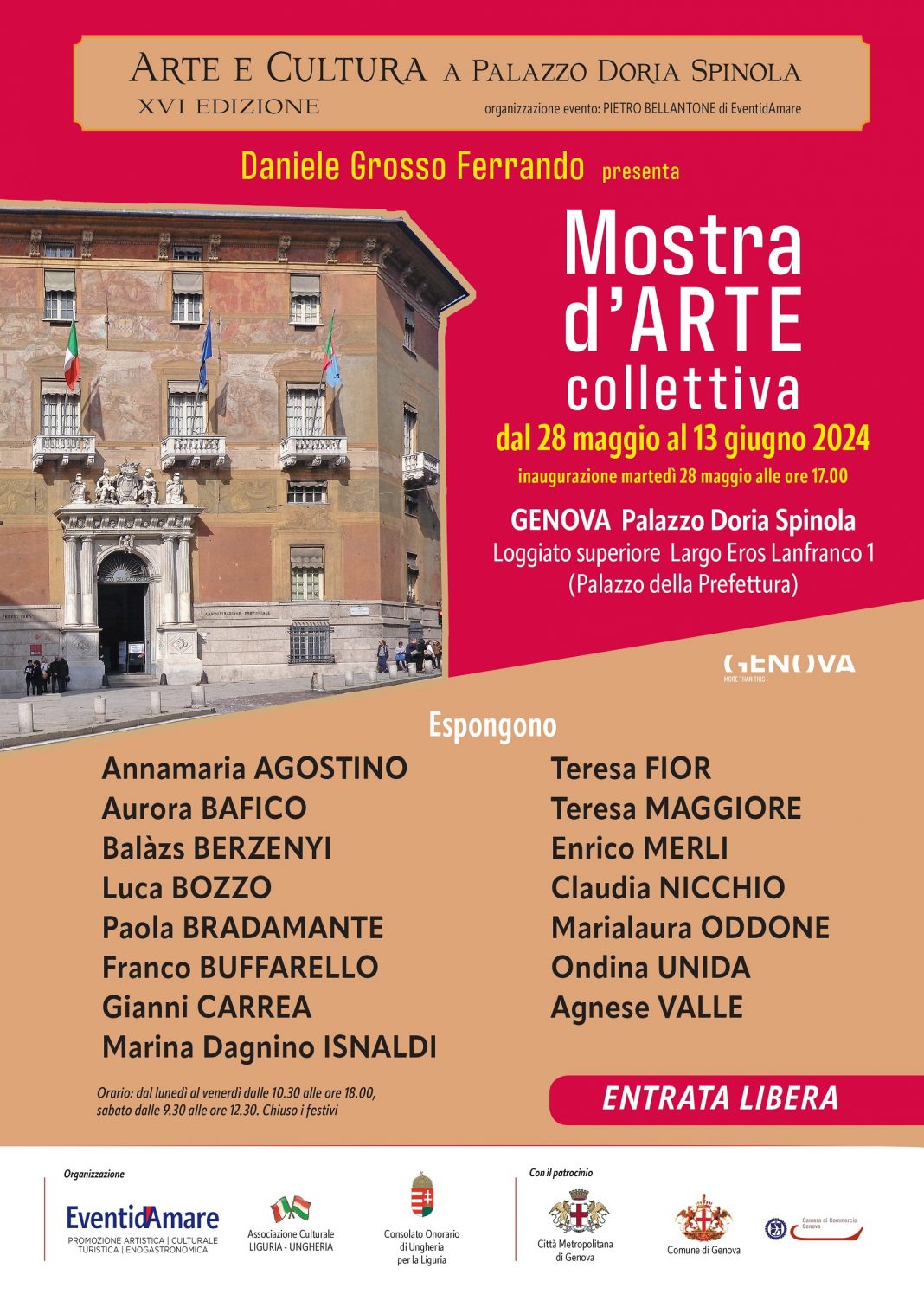 MARTEDÌ 28 MAGGIO 2024 presso la Sala del Consiglio Metropolitano di Genova SI INAUGURA LA MOSTRA COLLETTIVA "Arte e Cultura a Palazzo Doria Spinola”