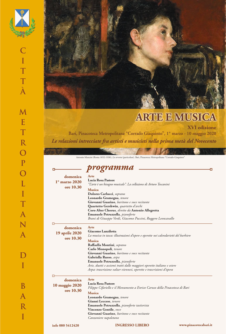 Si conclude domenica 10 maggio con Filippo Cifariello e il monumento a Enrico Caruso della Pinacoteca di Bari, a cura di Lucia Rosa Pastore.