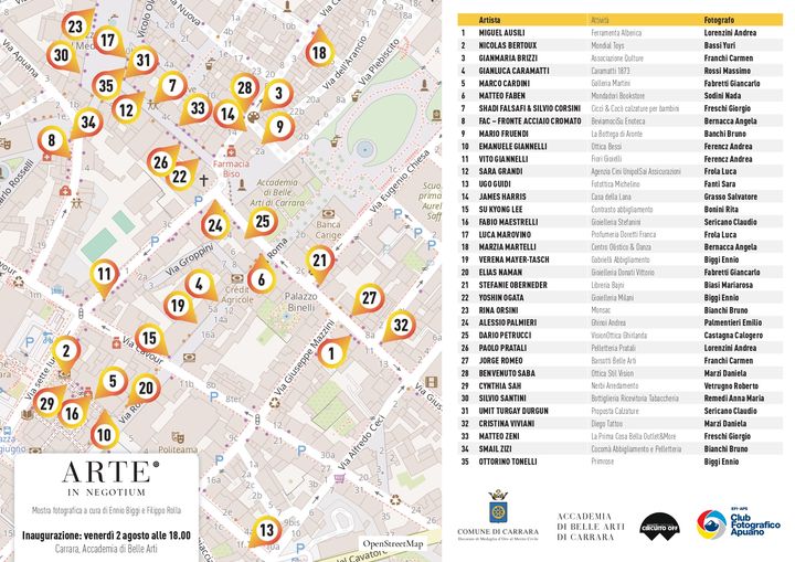 Arte in Negotium, una mostra d'arte contemporanea diffusa tra le attività commerciali di Carrara Centro, diventa adesso una mostra fotografica collettiva del Club Fotografico Apuano, a cura di Ennio Biggi e Filippo Rolla, accolta dall’Accademia di Belle Arti di Carrara e dal Circuito OFF di Carrara White 2024.