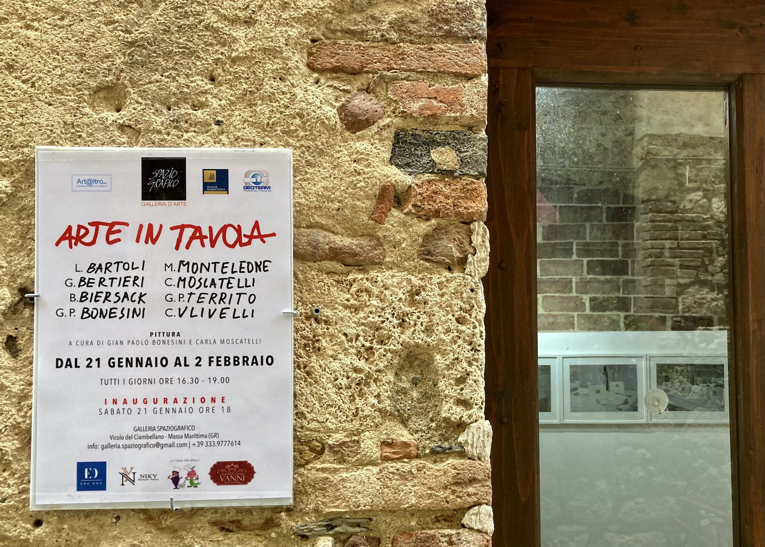 In questa mostra collettiva Galleria Spaziografico presenta il risultato di una performance artistica tenuta in quattro Ristoranti di Massa Marittima: Era Ora, La tana del Brilli, Niky e Vanni.