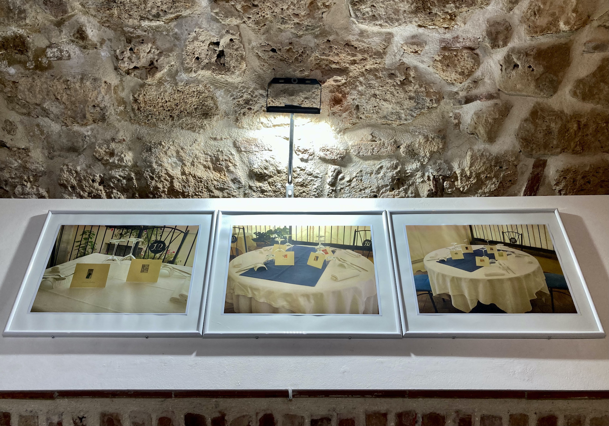 La mostra è il risultato di una performance artistica tenuta nell’Agosto 2022 con l’irruzione in quattro ristoranti, la posa strategica delle opere sui tavoli apparecchiati, la veloce sessione fotografica per fermare l’evento: un’interazione creativa e imprevista tra Arte e Cibo