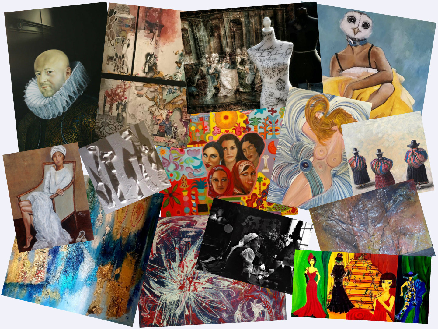 Quattordici artisti con le loro opere pittoriche e fotografiche interpretano arte mode e costumi delle società antiche e contemporanee. In esposizione alcuni modelli di costumi teatrali. Al vernissage: performance in costume d’epoca.
