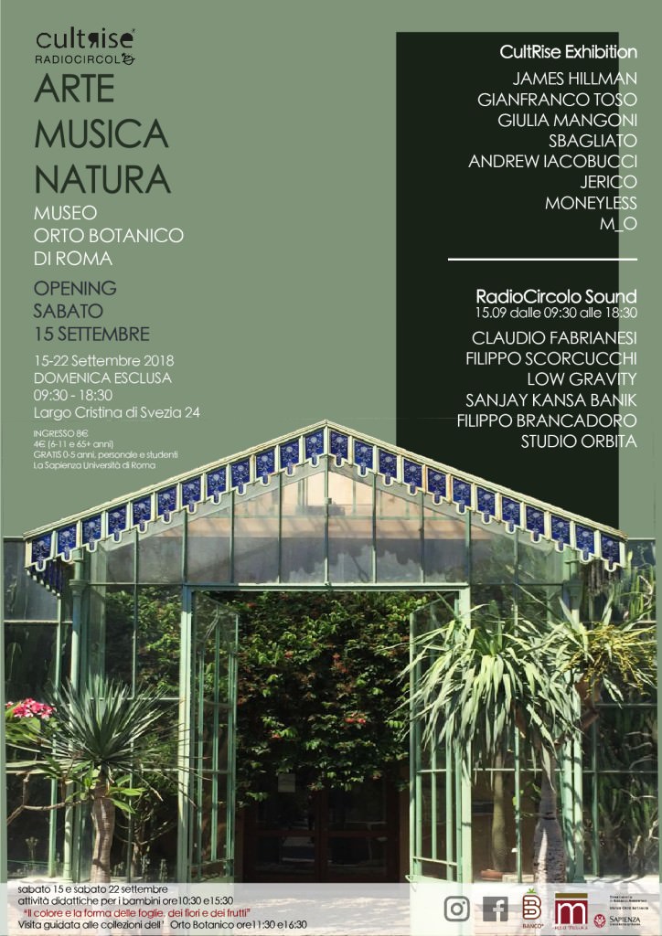 Sabato 15 settembre, nel cuore di Trastevere, l’arte contemporanea e la musica ambient sperimentale si fondono con il Museo Orto Botanico di Roma per dare vita ad un percorso sensoriale in cui immergersi, in una ritrovata dimensione di dialogo tra arte, suono e natura. Un nuovo appuntamento nel cuore di Trastevere curato dall’associazione culturale CultRise che da alcuni anni, sotto la guida di Cecilia Caporlingua, ha portato in evidenza e lanciato numerosi artisti.