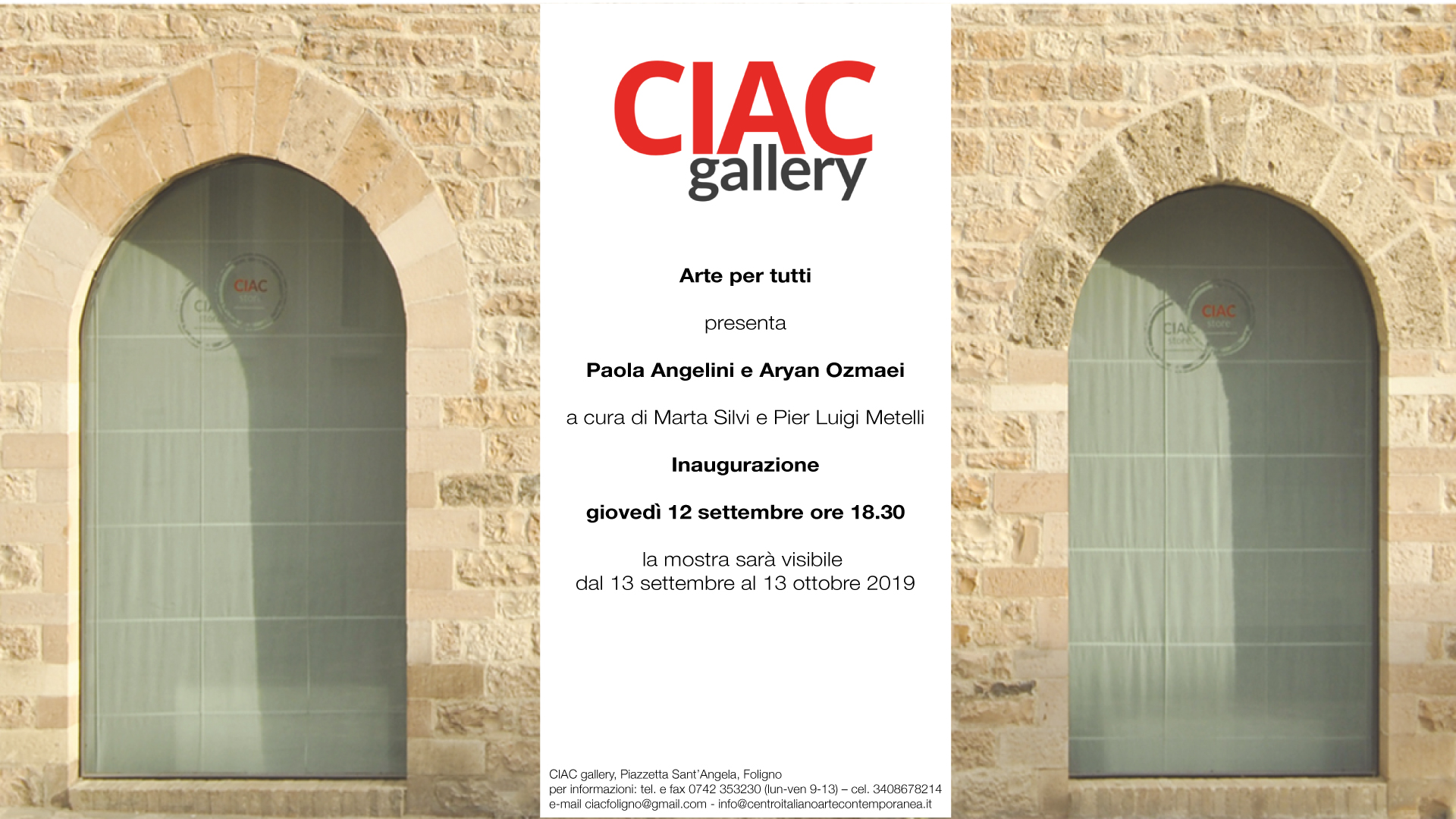 CIAC – Gallery accoglie quest’anno, nel format espositivo Arte per tutti, la nuova proposta dei curatori, Marta Silvi e Pier Luigi Metelli, che presentano l’opera delle artiste da loro invitate a eseguire il Palio della Quintana 2019: Paola Angelini e Aryan Ozmaei.
