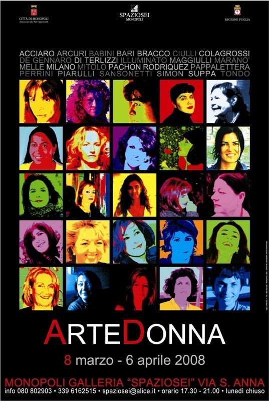 In occasione della Giornata Internazionale della Donna, la Galleria SPAZIOSEI di Monopoli (Bari), con il patrocinio della Regione Puglia e della Città di Monopoli promuove dall’8 marzo al 6 aprile 2008, negli spazi espositivi di via Sant’Anna n°6, la collettiva: