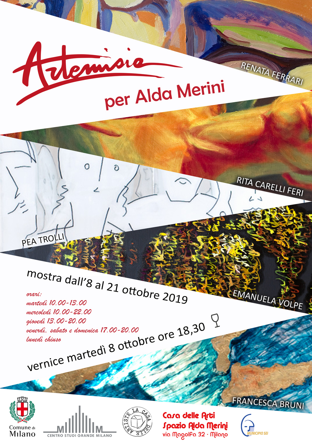 Artemisia dedica questa esposizione alla figura di Alda Merini, donna e simbolo, incredibilmente ricca di spunti e suggestioni. Ciascuna componente del gruppo racconta la personale visione di questa poetessa declinandola con il proprio linguaggio espressivo.