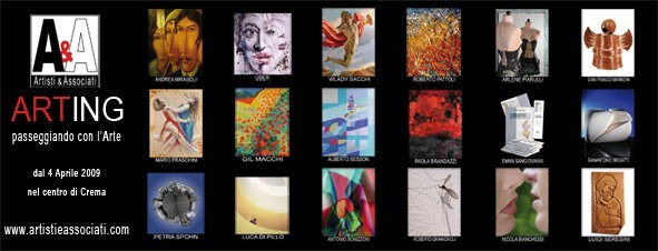 ARTING passeggiando con l’Arte è a tutti gli effetti una mostra a cielo aperto che prevede l’installazione di teli a stampa fotografica con la riproduzione delle opere degli artisti con formato 100 cm x H. 150 cm, esposti nel centro storico di Crema. Artisti & Associati propongono una galleria di pittori, fotografi, scrittori e scultori per tutti – semplicemente passeggiando per le vie della città.