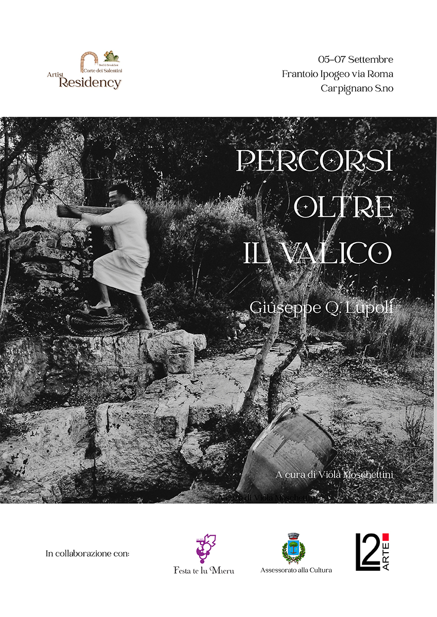 Dal 5 al 7 settembre 2025, in occasione della “Festa te lu Mieru”, arriva a Carpignano S.no, presso il FRANTOIO IPOGEO e PALAZZO ORLANDI in via Roma, l’iniziativa culturale ARTIST RESIDENCY: CORTE DEI SALENTINI, a cura di Viola Moschettini, che sarà costituita dalle mostre personali dell’artista Giuseppe Q. Lupoli, proveniente da Cisternino, e delle artiste milanesi Sara Montani e Matilde Piacentini.