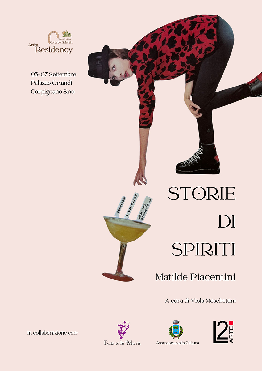 Matilde Piacentini, Collage Artist, progetto “Storie di spiriti”: attraverso delle opere realizzate con la tecnica del collage analogico, l’artista racconta il ruolo sociale che l’alcol riveste in plurimi contesti, accompagnando la vita dell’essere umano attraverso i secoli. Gli spiriti divengono il compagno silente a cui confidare i nostri timori, i pensieri più nascosti e allo stesso tempo il luogo in cui dimenticarsi di essi, sentendosi liberi di esprimere la propria identità. L’alcol nella vita odierna diviene infatti l’elemento che aiuta gli esseri umani a sopportare le pressioni sociali e non restare intrappolati nella gabbia del proprio ideale, a prescindere dalle nostre peculiarità.