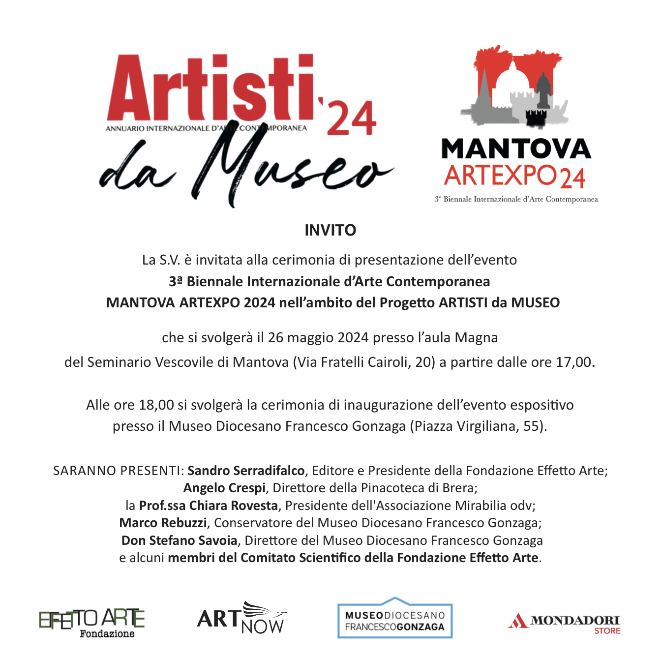 editore e Presidente della Fondazione Effetto Arte; Angelo Crespi, direttore della Pinacoteca di