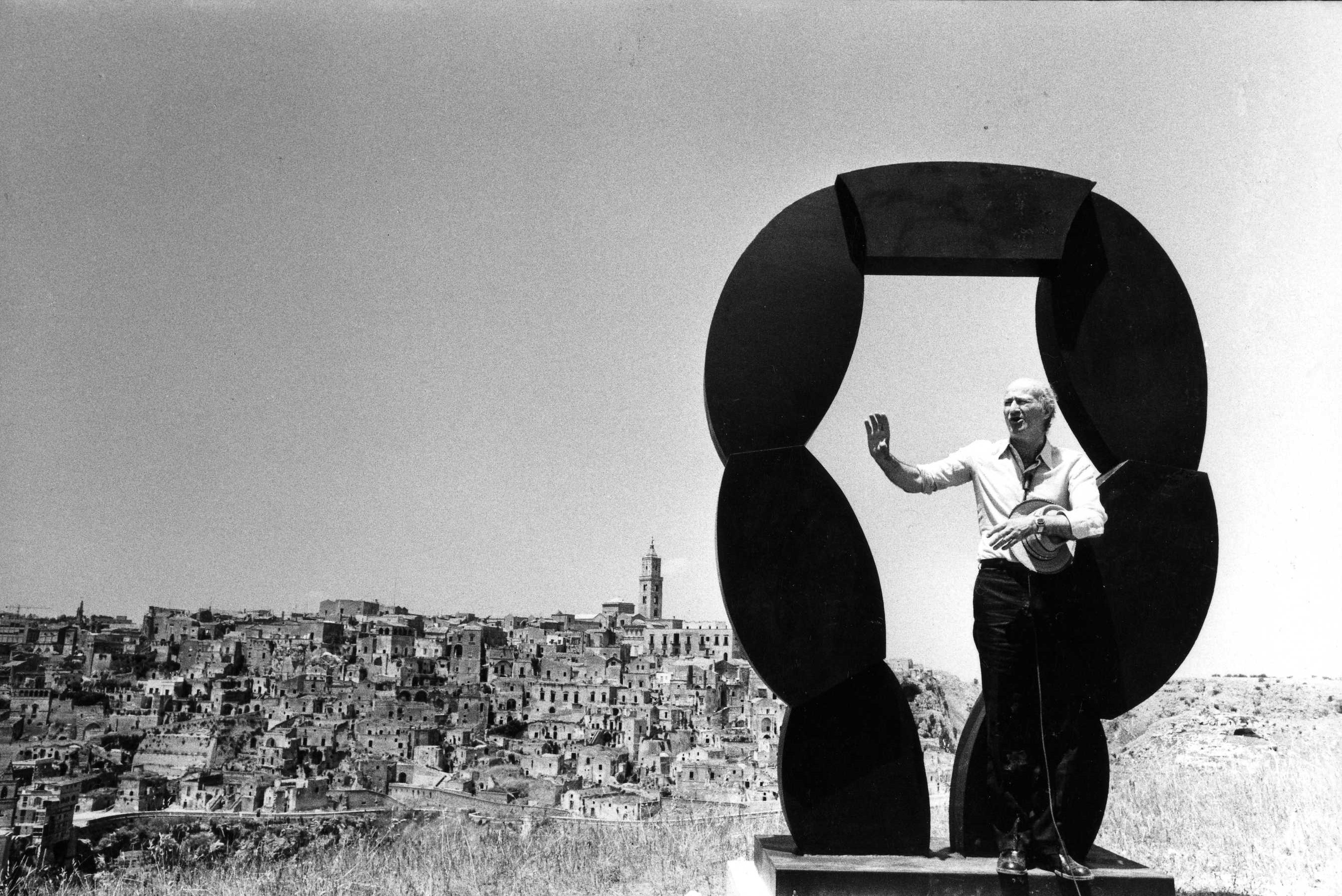 Decise allora di realizzare 11 “Sculture per Matera” 11 grandi opere in ferro - la più piccola misurava 1,96 metri, la più grande 2,84 - “Ferri” bifrontali che incorniciavano i Sassi e la Murgia per sottolinearne la perfetta armonia delle parti e tentare di proteggerli da interventi architettonici poco adatti alla loro storia e conformazione.