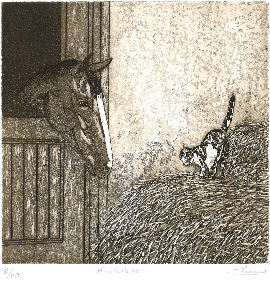 “Le sue incisioni sono spie di un grande e intenso vissuto interiore con uno stile fatto di amore per la forma che è figura risolta con una semplicità disarmante…” Debora Ferrari”