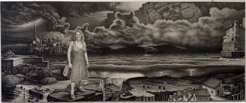 Marcello Del Soldato (FI): in un momento storico caratterizzato da continui e rapidi mutamenti in cui a prevalere sono ormai i nuovi linguaggi tecnologici e multimediali, la scoperta di artisti come Marcello Del Soldato è senza dubbio una piacevole e significativa sorpresa, rappresenta un collegamento ed una valorizzazione della nostra grande tradizione pittorica basata sulla conoscenza delle tecniche e del “mestiere”. In questa mostra piacentina l'artista toscano presenta infatti due opere di grandi dimensioni, eseguite interamente a grafite, dove l'abilità grafica e il disegno, insieme alla luce, sono unici e indiscussi protagonisti. Si può davvero affermare che Del Soldato letteralmente gioca con la luce, unica forza capace di impossessarsi della figura riuscendo a far emergere sentimenti nascosti, sensazioni e bagliori imprevisti e cangianti. Un fare pittorico, quello usato dal nostro artista, che ritorna alle origini di una manualità quasi artigiana e capace di valorizzare i materiali a disposizione con grande perizia e competenza. In questo artista, in modo naturale e spontaneo, riesce a convivere il richiamo al passato e il gusto della forma ma anche e soprattutto una grande emozione capace di creare magiche e surreali atmosfere fatte di silenzio e raccoglimento, un senso di forte e straordinaria empatia con l'osservatore.