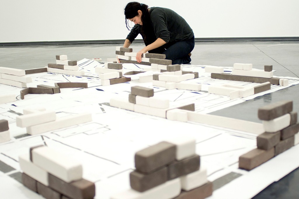 L’installazione principale prende spunto da un complesso architettonico progettato negli anni Sessanta dall’architetto Mario Pani e danneggiato nel terremoto di Città del Messico del 1985. L’opera, intitolata Tlatelolco, come il quartiere dove sorgeva l’edificio, ne riproduce la planimetria – su cui l’artista è intervenuta con una serie di elementi in ceramica – e vuole essere una riflessione su come l’architettura possa diventare uno strumento di imposizione e di potere.