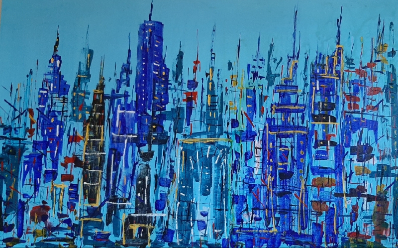 “Nella pittura di Italo Mustone l’uomo – scrive Ferdinando Creta - diviene sagoma, ripetuta all’infinito, denuncia dell’omologazione contemporanea. L’uomo diviene parte della folla, moltitudine che può essere mare o vulcano, segno nitido, ora confuso, nuova forza della natura. Dall’omologazione alla schiavitù tecnologica, le figure di Mustone sono androidi che hanno al posto del cuore un processore, o esseri minuscoli imprigionati in una scheda madre, a riportare alla mente le atmosfere distopiche di Metropolis di Fritz Lang. In una continua composizione basata sul colore, tra i fondi piatti e le figure bidimensionali, emerge la profonda conoscenza degli accostamenti cromatici. Una ricerca sperimentale che si è sviluppata negli anni su queste tematiche, delineando uno stile forte e riconoscibile, ma non banale e sempre attento all’espressione estetica.”