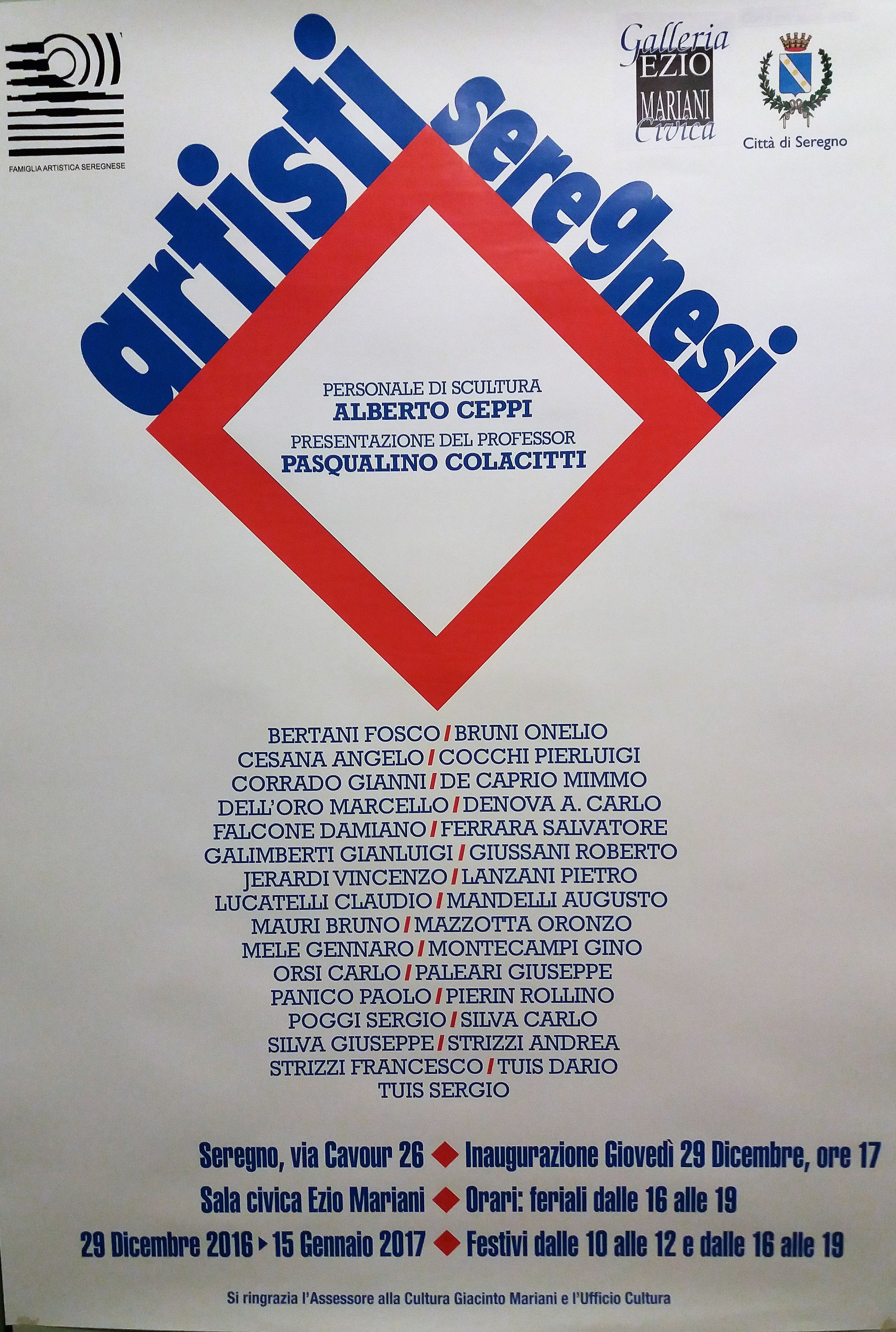 Mostra personale dello scultore medese Alberto Ceppi. Accanto a lui esporranno le loro migliori opere 30 artisti seregnesi o legati alla Famiglia Artistica Seregnese divisi tra pittori, poeti e fotografi per poter fare un resoconto dell’arte nella città di Seregno.