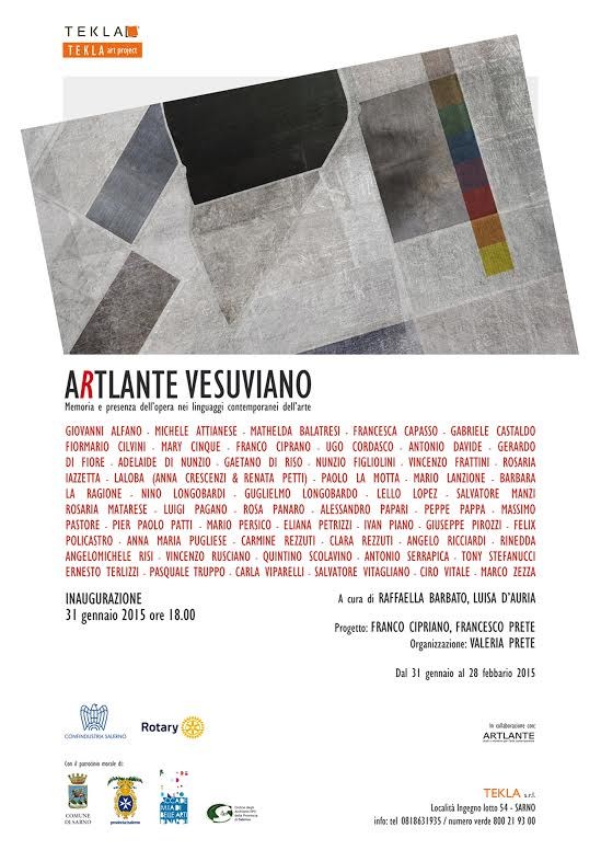 Negli spazi dell’azienda TEKLA s.r.l, in Sarno, sabato 31 gennaio, alle ore 18.00, s’inaugura la mostra d’arte contemporanea evento “ARTLANTE VESUVIANO, memoria e presenza dell’opera nei linguaggi contemporanei dell’arte”.