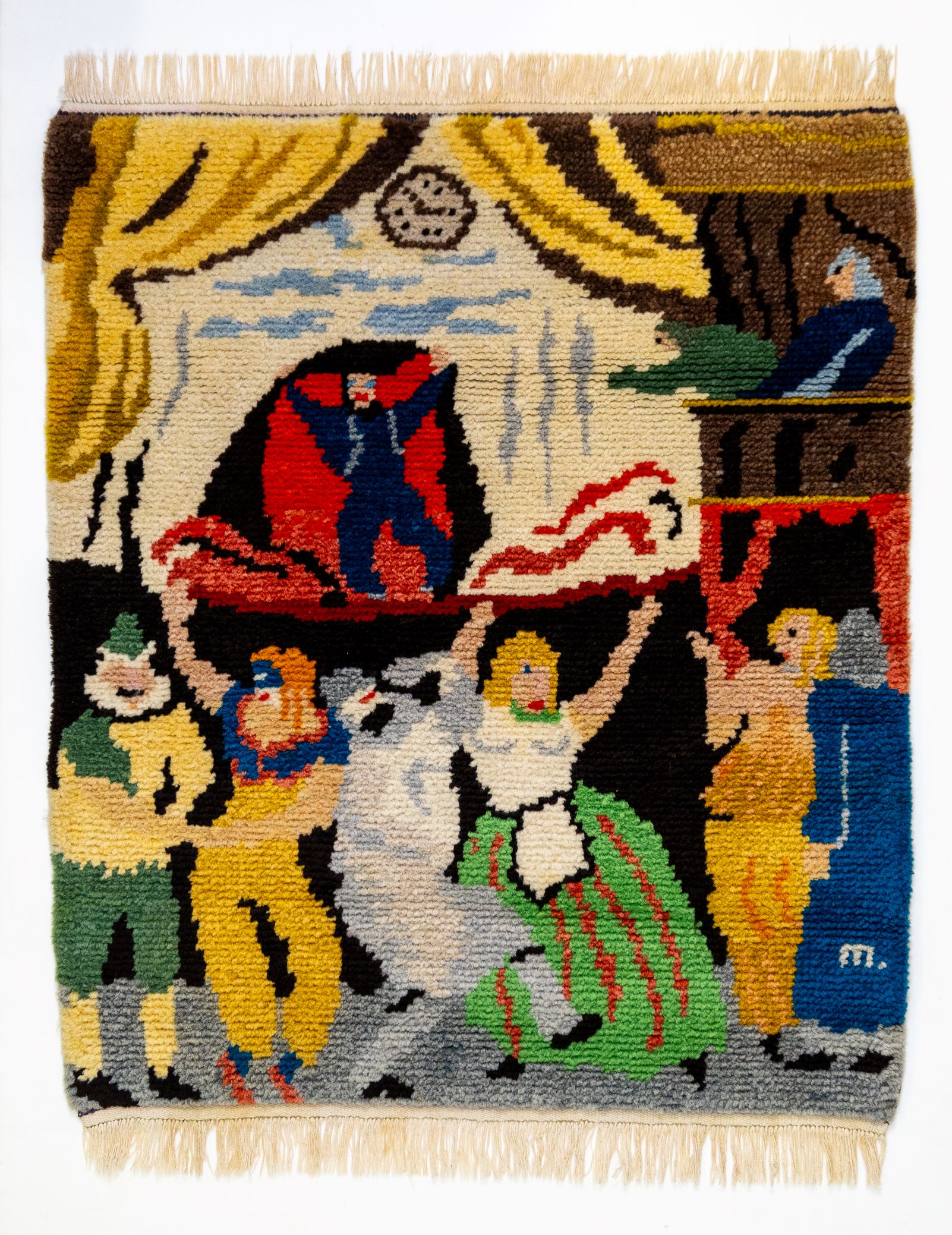 Grazie alla collaborazione con la Wolfsoniana - Palazzo Ducale Fondazione per la Cultura di Genova, con il Museo Bailo di Treviso e con il Museo del Paesaggio di Verbania, saranno mostrati i tre bozzetti esecutivi dei tappeti esposti e un quarto soggetto – Bagnanti – al momento ancora privo di corrispettivo tessile, insieme alle opere grafiche dedicate sempre alle figure de Il Circo/I saltimbanchi e de Il Veglione.