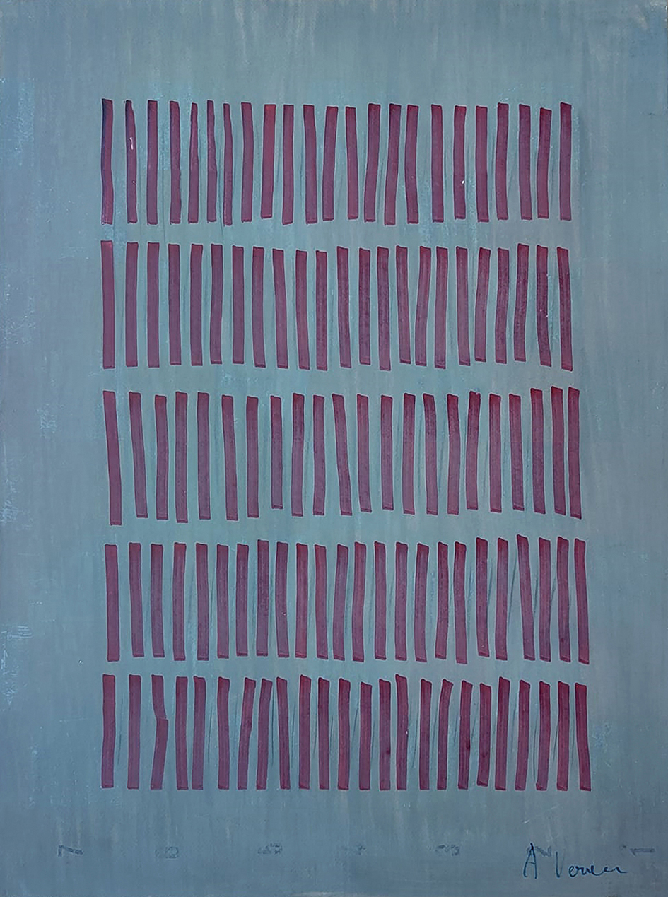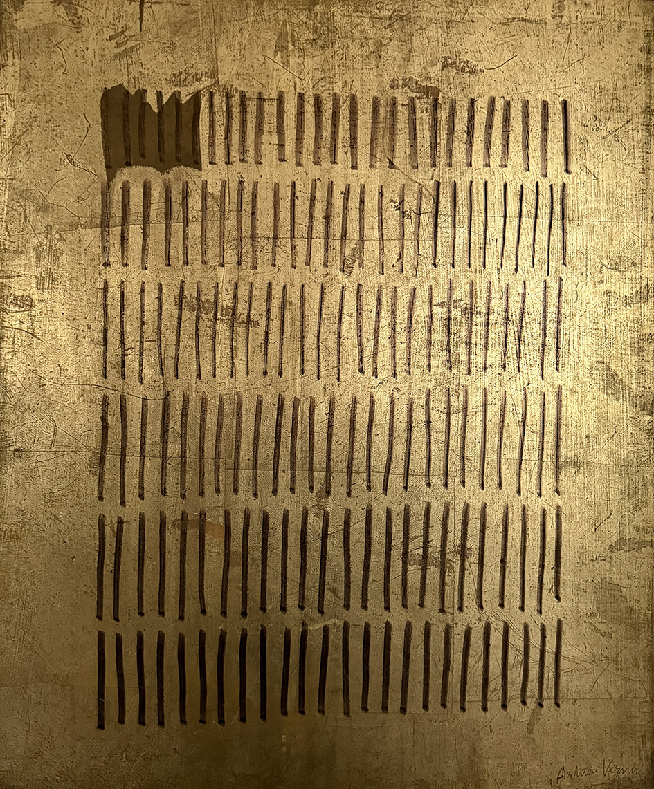 In esposizione un nutrito gruppo di opere di Arturo Vermi, realizzate tra il 1961 e il 1975, che testimoniano il percorso di conquista di una individualissima scrittura segnica, elemento caratterizzante delle sue opere e di quelle del “Gruppo del Cenobio”. Gruppo che Arturo Vermi fonderà nel 1962 insieme ad Agostino Ferrari, Ugo La Pietra, Ettore Sordini e Angelo Verga, uniti da un comune atteggiamento sulla pittura e sulle potenzialità ancora inespresse, con ciò manifestando la propria appartenenza alla storia dell’evoluzione del fenomeno linguistico, con la volontà di far confluire nel segno il carattere millenario di una scrittura fatta di simboli, di tracce, di segnali. Un procedimento – come segnala Marcello Palminteri – “giocato sul valore timbrico, sulla fluttuazione del ritmo e sulla trama delle sequenze, accrescendo il valore del gesto, attivando affinità che sembrerebbero più proprie della musica, laddove l’atto del comporre combina la libertà espressiva con la necessità del ritmo, del tempo: il segno presta la sua immagine alla vicenda delle trasformazioni, disponendosi in successione di intervalli, in ripetizioni verticali (come avviene nelle opere di Arturo Vermi), orizzontalmente o diagonalmente (in Angelo Verga), attestandosi in zone fisse o fluttuanti (in Ettore Sordini), generando ipotesi di mappe ed anticipando la sua vocazione architettonica (in Ugo La Pietra), disponendosi in forma di scrittura (in Agostino Ferrari).”