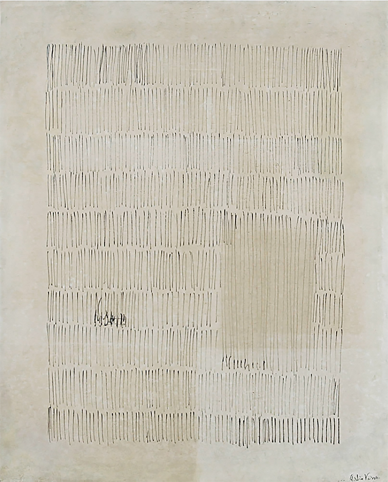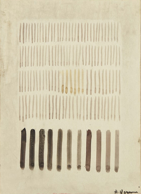 Arturo Vermi (Bergamo, 26 marzo 1928 - Paderno d'Adda, 10 ottobre 1988) definisce ben presto la sua poetica, la sua singolarissima cifra stilistica: sin nei primi anni Sessanta, nella semplificazione estrema emergono forme sempre più snelle. Nascono le Lavagne, le Lapidi e, soprattutto, i Diari. Qui il segno, sempre più sottile, più o meno fitto o regolare, diventa ipotesi di scrittura, grammatica del sentimento. Sono pagine ora di dimensione palmare, ora di imponenza egizia: ama sperimentare e per questo i supporti saranno carte, tele, legni su cui interviene con oli, acrilici, smalti o più semplicemente con chine, penne biro o pennarelli. Già nel titolo, possiamo scorgere la componente intimistica di queste opere, in cui il segno, il ripetersi dei tratti, che apparentemente potrebbe sembrare una “formula” è invece un segno emotivo ovvero (come già annotava Guido Ballo nel 1964), un segno di valore poetico.