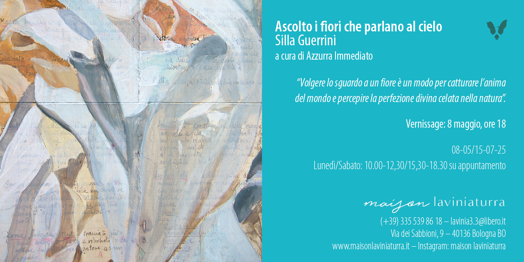 (inaugurazione h. 18.00) a martedì 15 luglio prossimi all’Atelier Maison laviniaturra di Bologna