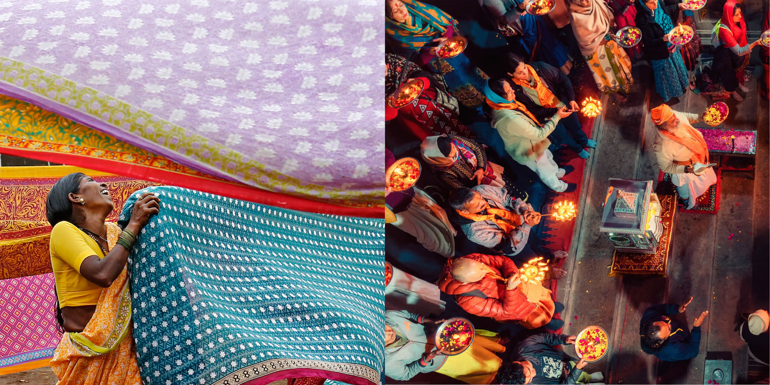 Due giovani generazioni a confronto, due punti di vista, due modi di sentire e di raccontare l’India e la sua magica unicità, che persiste fin dai tempi antichi. Un Paese dalle contraddizioni forti quanto i suoi accesi e armonici colori e gli intensi profumi delle sue spezie, dove la dimensione spirituale, del rito e della preghiera, si intreccia profondamente alla vita quotidiana visibile in un percorso espositivo che si snoda da Mumbai a Kolhapur, da Vrindavan a Jejuri, dalla Spiti Valley al Rajasthan, per restituire momenti del quotidiano.