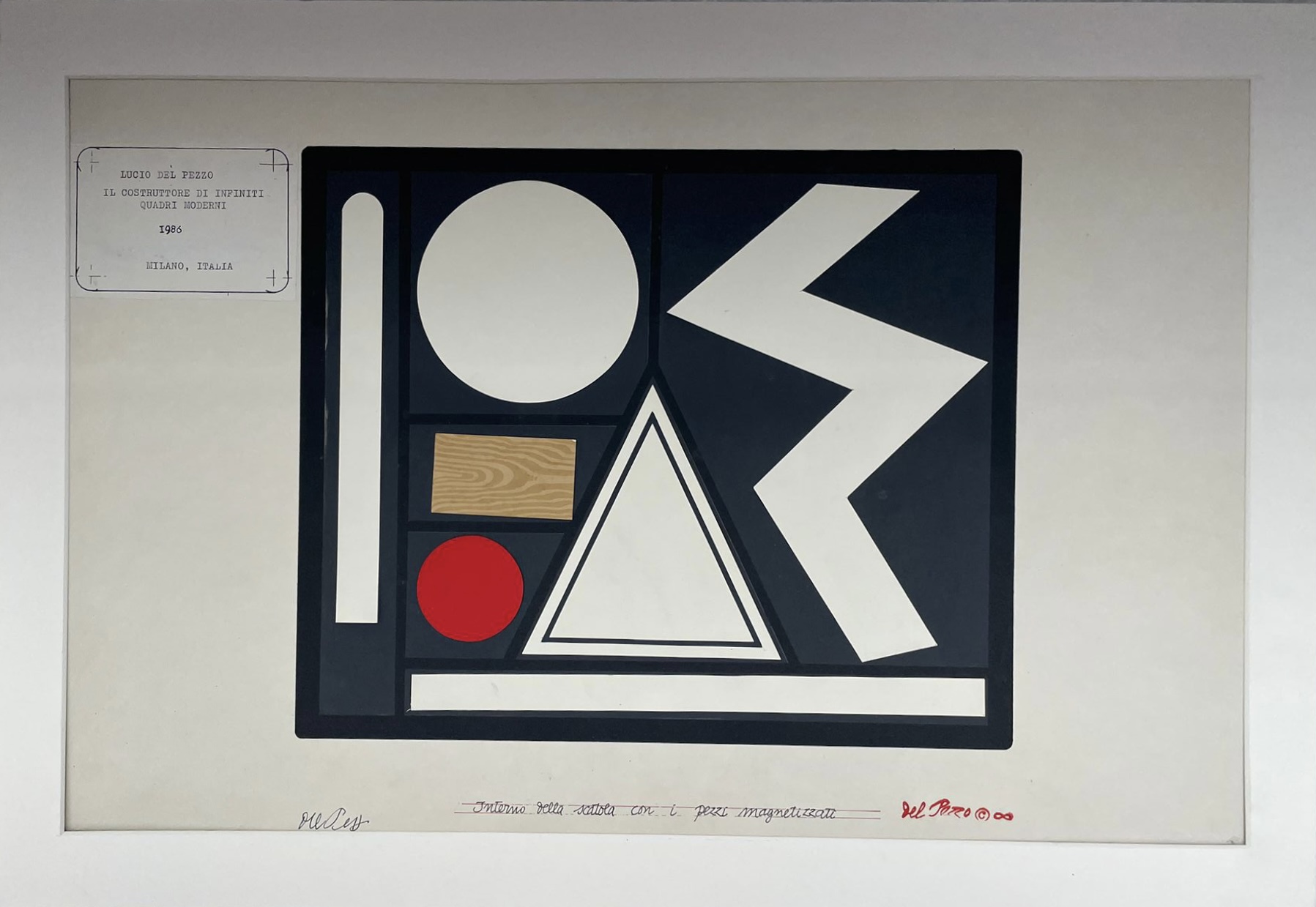 Ludico, neo-dadaista ma anche pop, astrattista e metafisico sono alcune delle definizioni più ricorrenti utilizzate per descrivere e allo stesso tempo circoscrivere la poetica dell’artista Lucio Del Pezzo. Un artista che in solitaria (aderì solo ad un gruppo artistico da giovanissimo) si è imposto all’attenzione della critica italiana ed internazionale per oltre sessant’anni con mostre significative in tante città del mondo [Dal testo critico di Alberto Dambruoso]