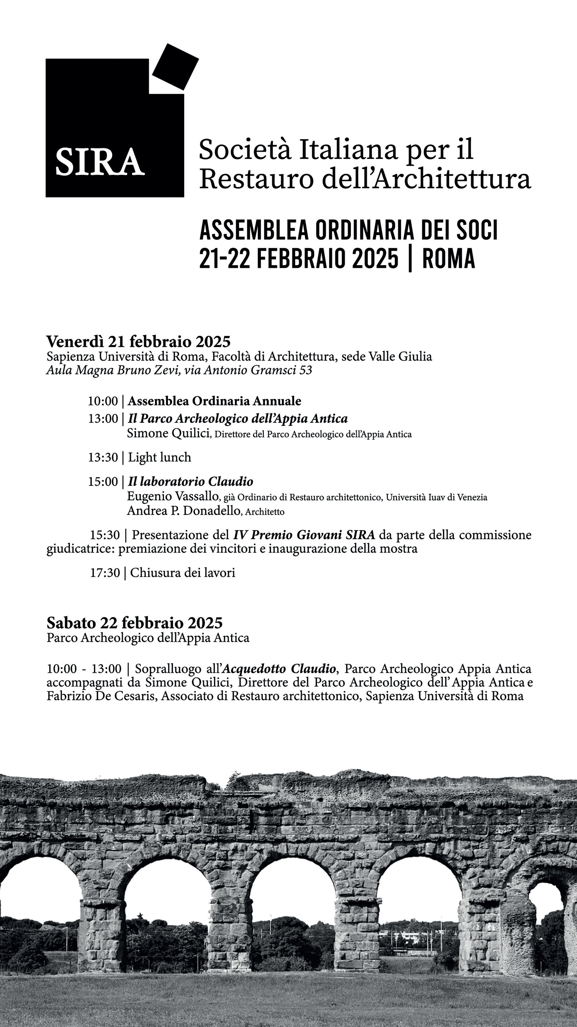 Date: 21-27/02/2025 presso la Galleria Espositiva della Facoltà di Architettura in via Gramsci, 53 – 00197 Roma.