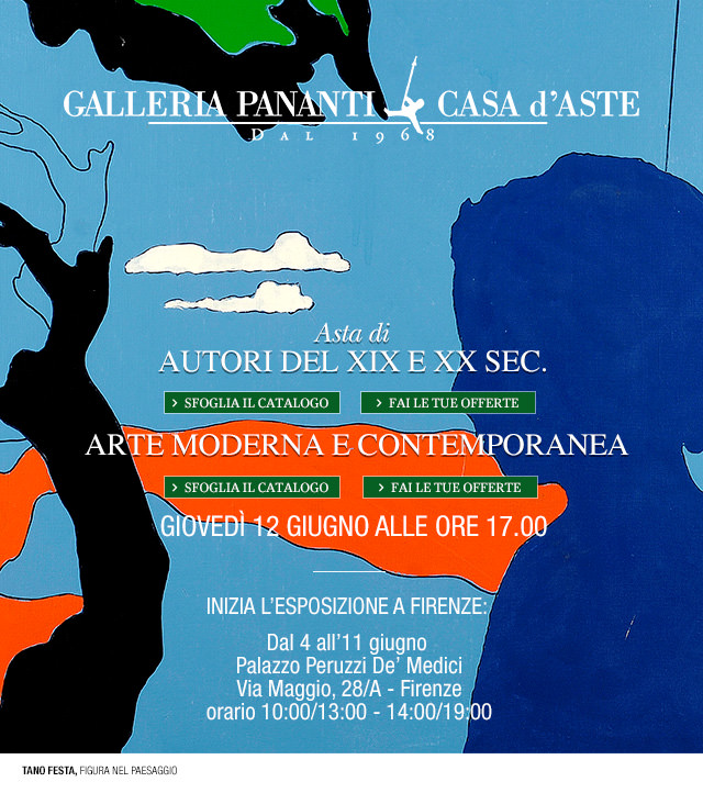 La Galleria Pananti Casa d’Aste organizza per sabato 5 giugno un’importante vendita di opere di Autori del XIX e XX secolo, Arte Moderna e Contemporanea.