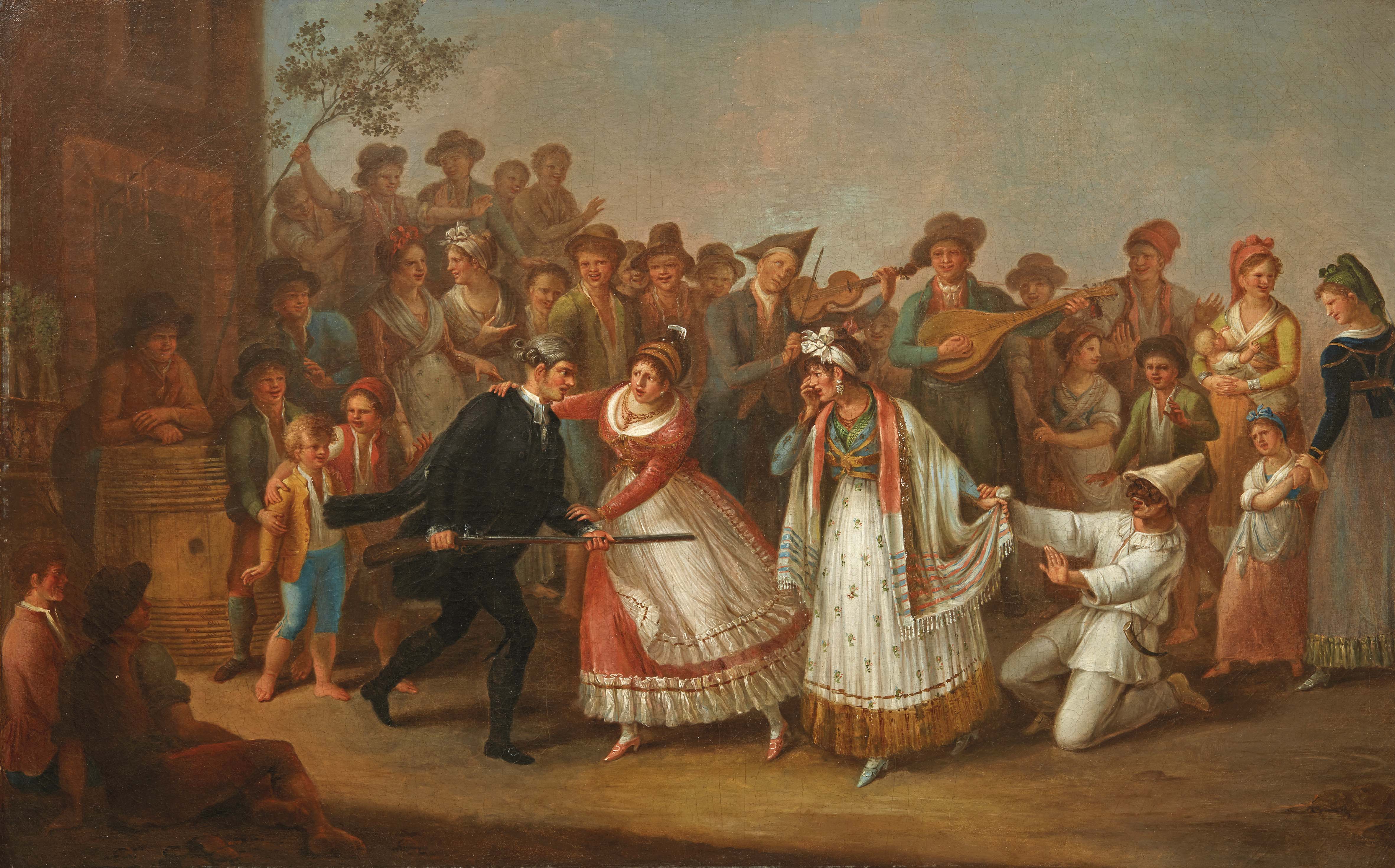 Tra le opere più significative troviamo il BALLO DELLA ZEZA di Gaetano Gigante, artista di tradizione colta non frequente sul mercato, attivo tra fine sec. XVIII e inizi sec. XIX, noto per le sue “bambocciate” di carattere popolare. Il dipinto presentato da Pandolfini, un olio su tela di grandi dimensioni, che costituisce una rara rappresentazione di una scena in costume popolare durante il festeggiamento tipico del Carnevale della tradizione campana, ha una valutazione di 35.000/50.000 euro (lotto 62).
