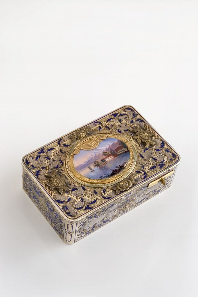 E una scatola in argento con inserto centrale smaltato che cela un carillon con automa realizzata a Vienna nel 1880 circa (stima 8000/12000 euro).