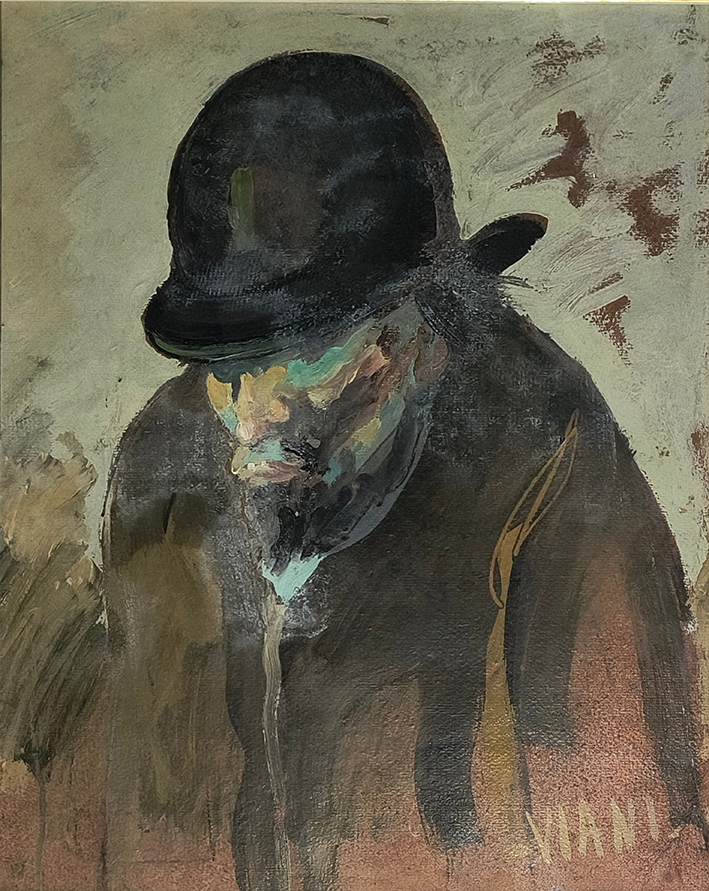 particolar modo citiamo un ritratto ad olio di un clochard e un dipinto con tre “Navarchi”.