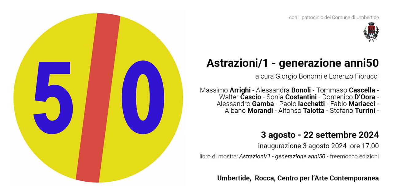 La mostra Astrazioni /1, vuole essere una prima ricognizione su una generazione di artisti ancora oggi poco studiata, come quella nata negli anni ‘50 e che oggi ha circa settant’anni. Un’età in cui è possibile fare un significativo bilancio delle singole ricerche e valutare gli esiti di una generazione. Il progetto, a cura di Giorgio Bonomi e Lorenzo Fiorucci, è dunque la prima tappa di un percorso che vuole concentrarsi su una tipologia artistica, quella astrattista, adottata in varie forme dagli artisti invitati a partecipare, e che rappresenta uno spaccato significativo della pur ampia e variegata compagine creativa presente in ambito nazionale. Dodici artisti tra pittori e scultori attivi in un ambito di ricerca affine, su cui la mostra vuole segnare un punto, fotografando più momenti della loro indagine, dagli esordi fino all’attuale stato del loro percorso. L’astrazione, infatti, offre ancora stimolanti punti di riflessione critica resi tangibili da un’esposizione come questa, che può restituire la vivacità interpretativa in atto in questo momento, attraverso i quadri e le sculture di alcuni dei protagonisti dell’arte italiana attuale. La mostra allestita presso la Rocca di Umbertide dal 3 agosto al 22 settembre 2024 segue l’anticipazione che c’è stata a Deruta presso il Granaio la scorsa primavera. A differenza di quest’ultima le opere in mostra testimonieranno per ogni artista tre fasi evolutive del loro lavoro, il visitatore potrà così orientarsi nelle diverse fasi di ciascun artista invitato. L’esposizione è inoltre accompagnata da un catalogo edito da Freemocco (Deruta), in cui sono raccolte le immagini delle opere in mostra corredate da testi critici e apparati bio-bibliografici.