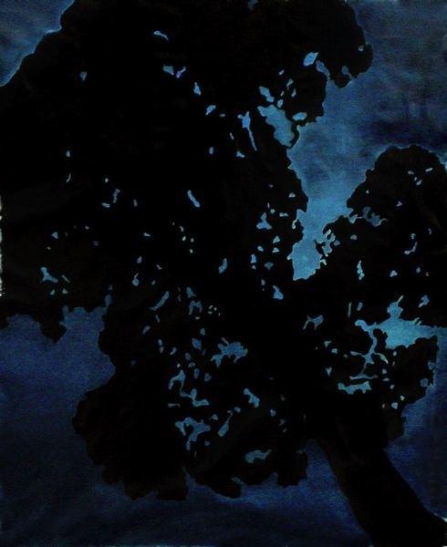 Le chiome degli alberi, sotto l’effetto delle differenti luci diurne e notturne, diventano macchie scure, perdono i loro contorni specifici, si tramutano in atmosfere……….. Eugenia Lecca vive e lavora a Roma”. (Valentina Casacchia)