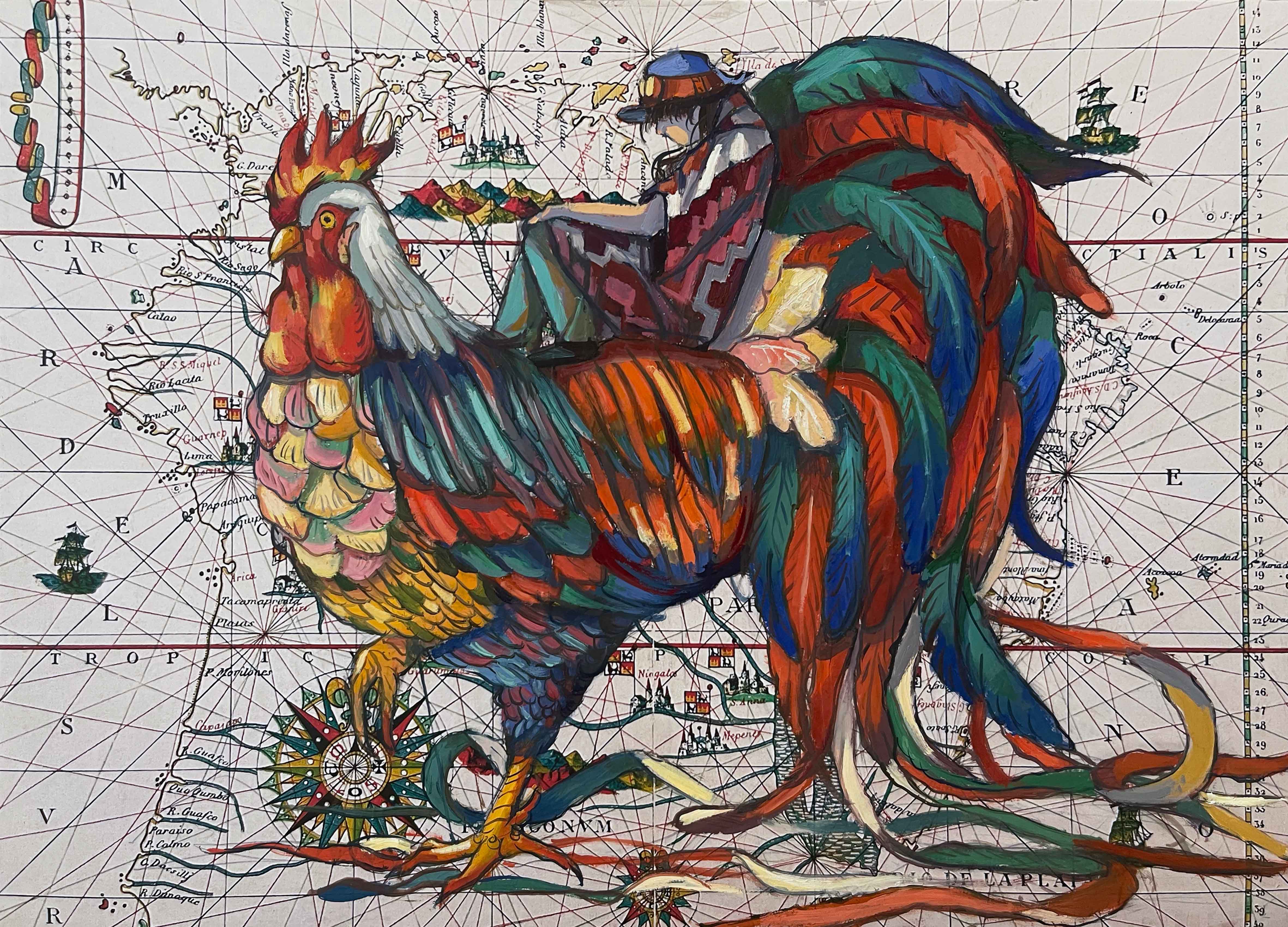 Nuova serie di opere realizzate ad olio su mappe antiche, per narrare un viaggio senza tempo oltre ogni confine reale ed immaginario, un sogno ad occhi aperti oltre le stelle e verso un mondo diverso.