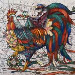 Osservando le opere, sembra di sfogliare le pagine di un libro che racconta un universo parallelo, abitato da creature mitiche cavalcate da impavidi avventurieri e telescopi utilizzati da curiosi scienziati, tutti protagonisti senza volto che, da tempo, sono diventati la chiave di accesso alle peregrinazioni narrate dall’artista.