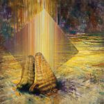 Fortemente connotate dalla luce, le tele di grande formato, sono coinvolte da immagini che intrecciano il sogno e, le visioni di apparizioni concrete e, suggestive.