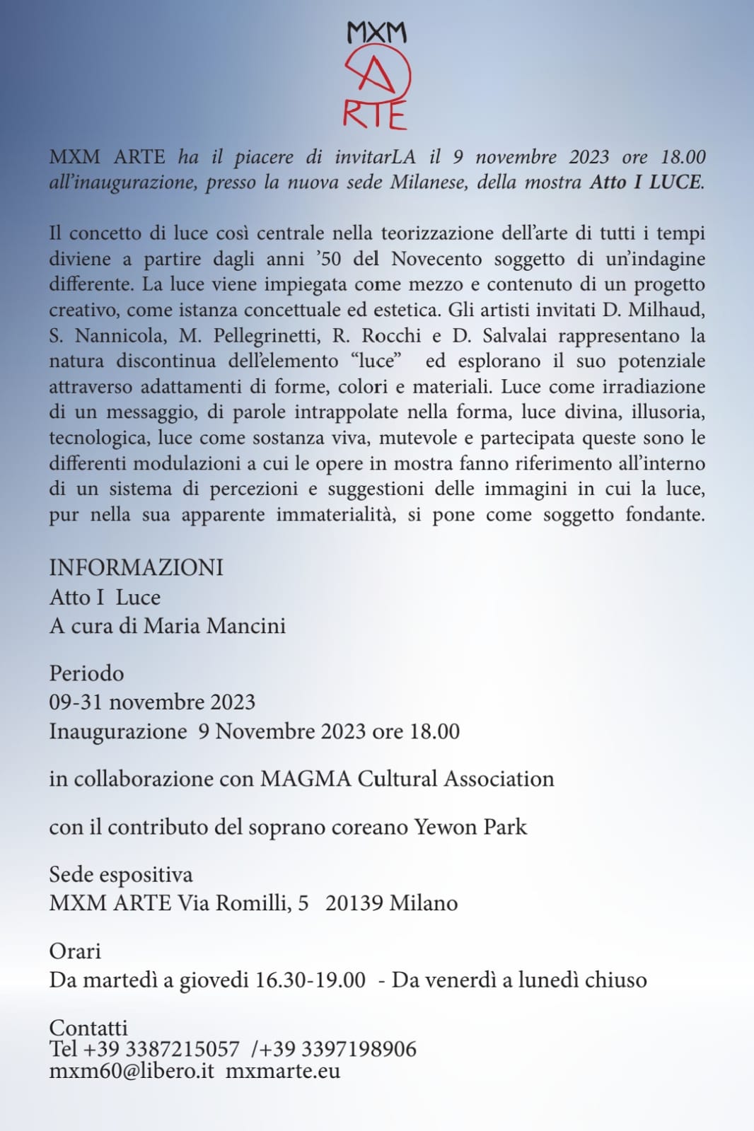 MXM ARTE Via Romilli, 5 20139 Milano