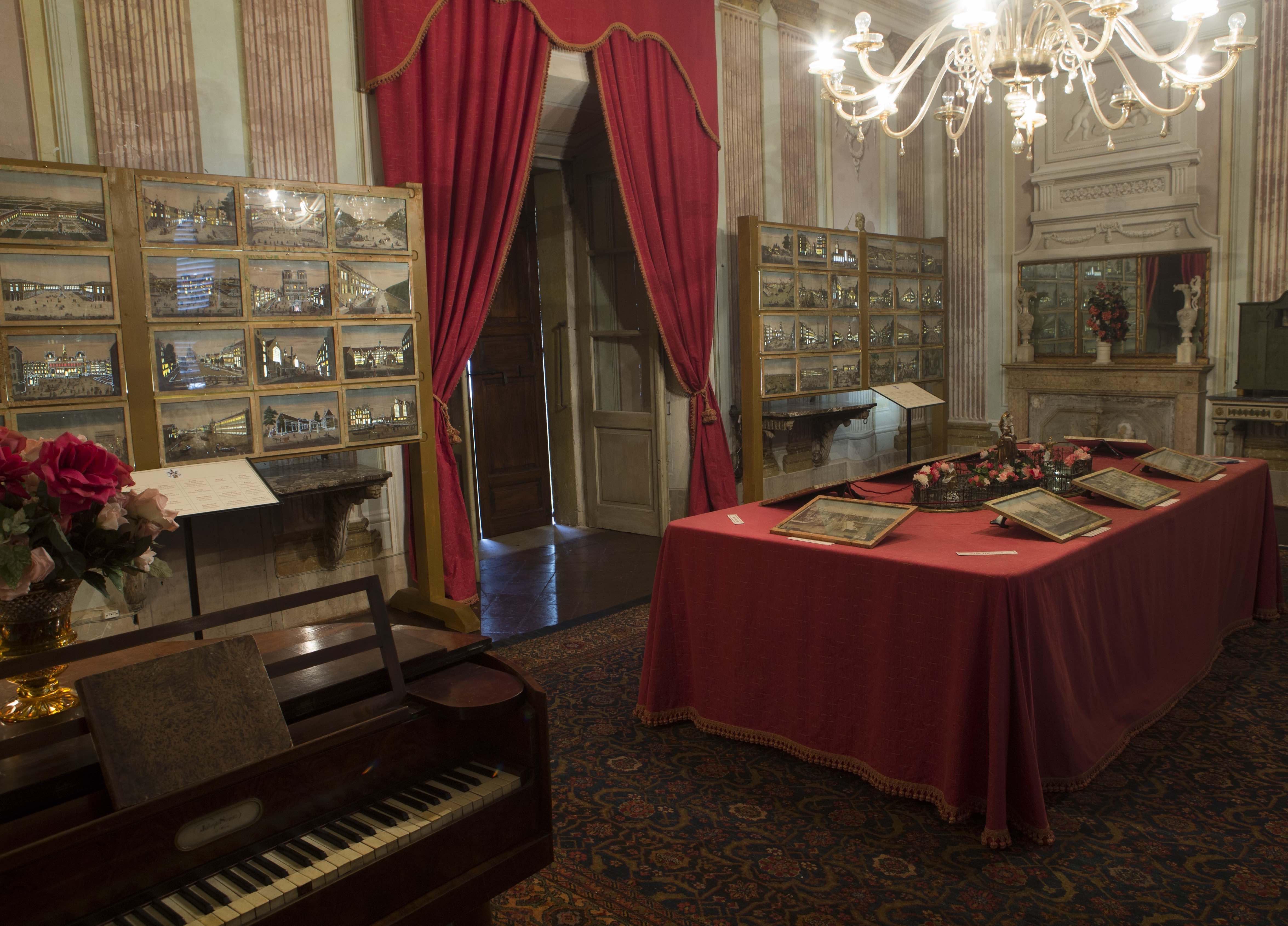 Solo in occasione della mostra sarà possibile ammirare ambienti solitamente inaccessibili, in particolare, nella stanza della musica, troverete una collezione davvero molto interessante, esposta per la seconda volta volta: 104 vedute ottiche originali del 1700.