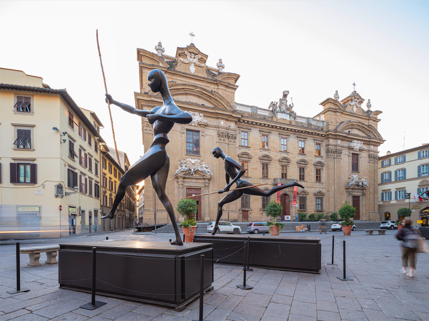 Antonio Signorini, scultore di origine toscana ampiamente riconosciuto sul piano internazionale, espone a Firenze le sue opere monumentali in bronzo in tre piazze del centro storico: Piazza del Carmine, Piazza San Firenze e Piazza del Castellani, seguendo la mostra dentro la mura della galleria.