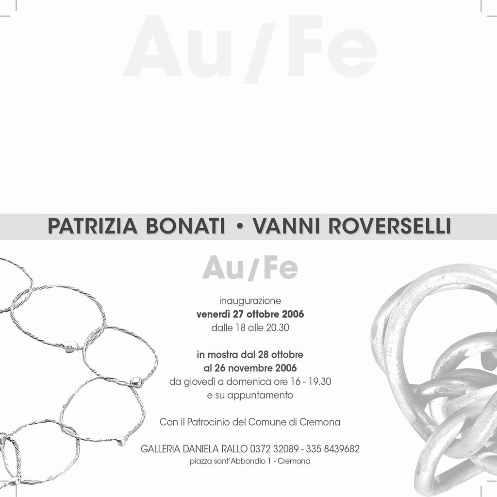Mentre le collane in oro della Bonati si allungano all’inverosimile e i suoi anelli si inerpicano sul dorso della mano, le sculture in ferro di Roverselli diventano anelli nodi di un certo peso, fissati alla parete. Il gioiello diventa scultura e la scultura diventa gioiello.